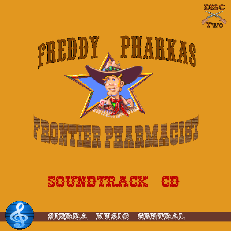 This double soundtrack CD features the original "Freddy Pharkas: Frontier Pharmacist" Roland SC-55 General MIDI soundtrack, recorded from a Roland Sound Canvas SC-55mkII, with extensive Roland MT-32, Roland SC-8850 ED and Yamaha MU100R XG enhancements.